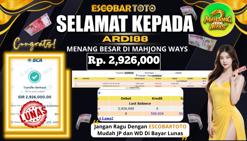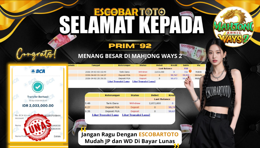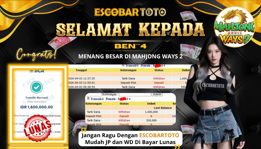 SELAMAT KEPADA PEMENANG DI ESCOBARTOTO